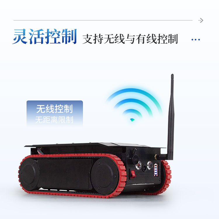 灵活控制:支持无线与有线两种控制方式,有线控制距离≥50米,无线控制无距离限制。视频采集、拍照及机器人控制均由终端完成。
